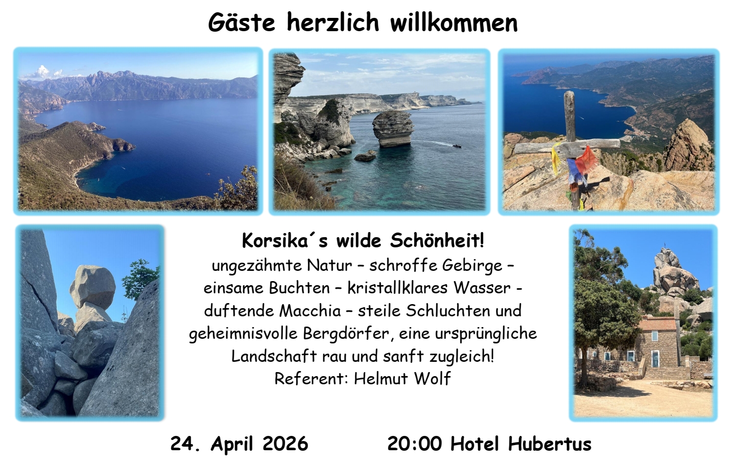 Ort und Zeit: falls nicht anders angegeben um 20:00 im Hotel Hubertus